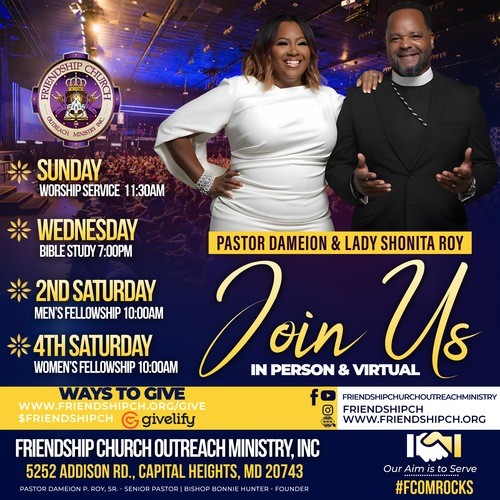 Friendship Church Outreach Ministry, Inc. is a place where people can meet Jesus, engage in life-giving community, and everyone is welcome. We believe in creating a space where people can have authentic encounters with Christ, discover their gifts and use them for God's glory. Join us for our Sunday services!